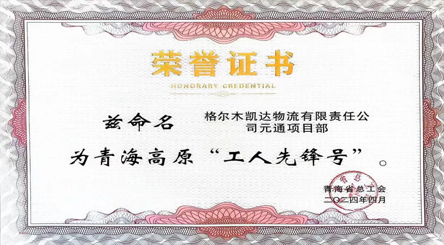 近日,2024年青海省五一劳动奖和青海高原“工人先锋号”评选结果揭晓。格尔木凯达物流有限责任公司元通项目部获此殊荣,此次获奖是对项目部各项工作的充分肯定,也是对项目部全体成员辛勤付出和不懈努力的赞誉。